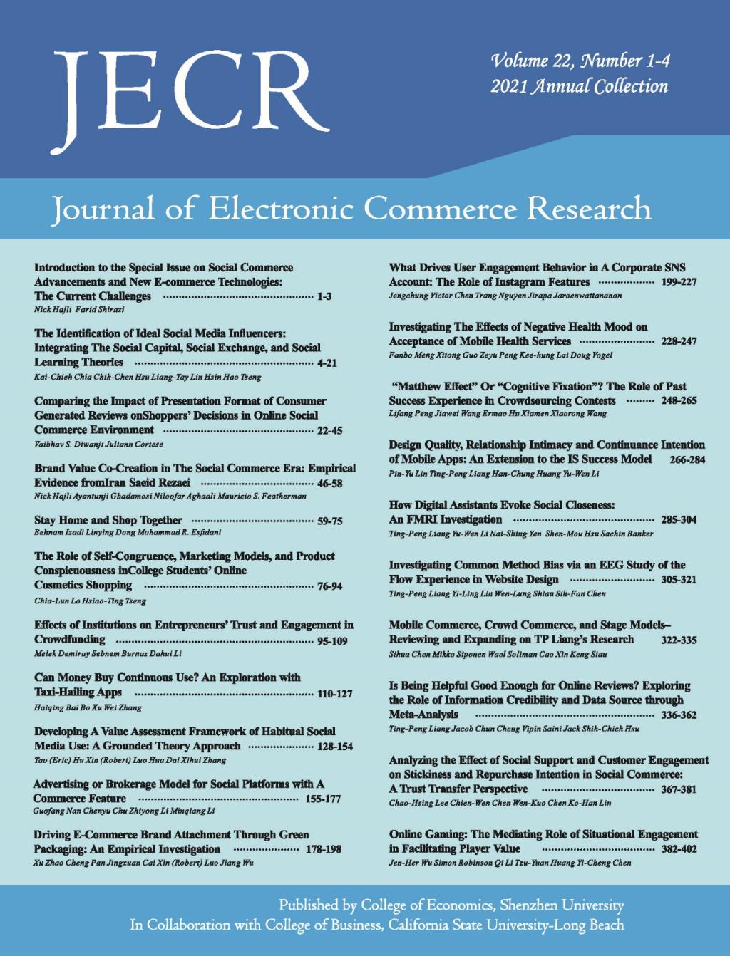 Journal of Electronic Commerce Research (JECR) is a quarterly peer-reviewed (double blind) journal with both paper and electronic publication. It provides an international forum for researchers and professionals to share their knowledge and report new advances on all topics related to electronic commerce theories and applications. The journal focuses on electronic commerce including their theoretical foundations, infrastructure, and enabling technologies.