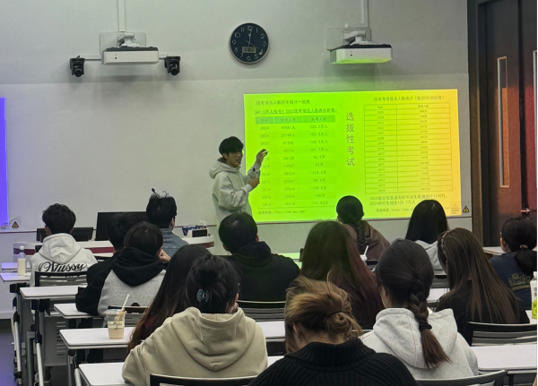 2023级应用经济学专业考研第一名丰伟磊同学,从考研科目、学习方法到时间规划等方面进行了全面讲解。他详细分析了西方经济学、数学三、英语一和政治的备考要点,并结合自身经历分享了读研感受,鼓励同学们坚定目标、科学备考。他不仅分享了自己的学习心得,还提供了时间规划、考研建议以及读研感受等宝贵信息。通过这次分享会,同学们对考研有了更深入的了解,也获得了实用的备考策略和建议。