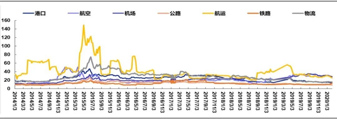 图1-7 2014-2020交通运输各子行业走势