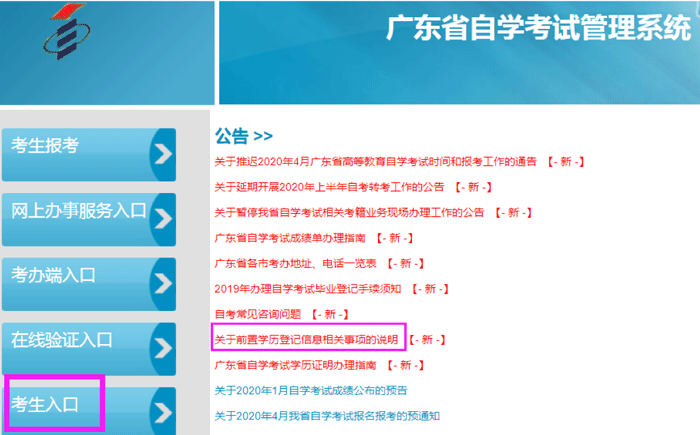 6月申请自考本科毕业的考生,必须在5月20日前,登录广东省自学考试管理系统https://www.eeagd.edu.cn/selfec/点击【考生入口】进入登录页面,成功登录系统后点击前置学历信息管理,填写前置学历及认证信息,提交省考办查验,省考办复审属实后才能申请本科毕业。