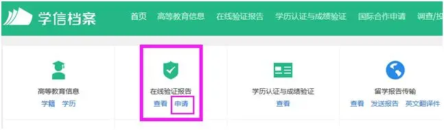 点击申请在线验证报告,